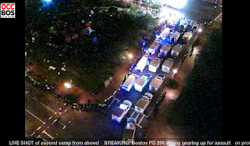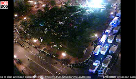2:02AM(EST): Tons of arrests reported, and also the camera operator has witnessed arrest. Outside the second camp he remains, he's been standing there watching the Boston transit and state police clear off the camp. There appears to be no protests left, and protesters have been drove away in the paddy wagons, says the camera operator.