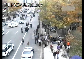Occupy Denver is currently "in stand off" with local police. It's unclear what is going on at the moment, other than the police have appeared to be lining up along the sidewalk, and telling them to get back on the sidewalk if they attempt to step off to go past the police.