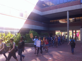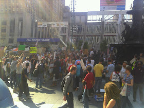Occupy Wall St. appears to have a whole day planned. It started at 11:00AM EST, with a march to the banks. Caught live on camera, protesters are outside of Citibank. Arrests have been made, OWS' website says at least 22. Some of the protesters were inside the building attempting to close their accounts.