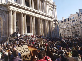 What's my view? Well I think it's a wonderful thing. It's kind of about time. I've been reading the Twitter stream for the hashtag Occupy, and Occupy Wall St. Someone said recently for the first time she really has hope. [..] They call it Wall St., the mega-rich-global bankers that control everything [..] the government is a puppet of them.