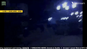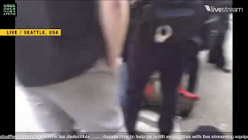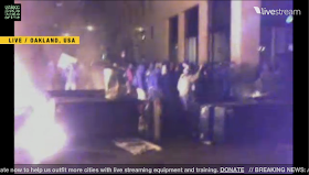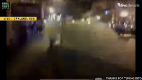 4:25AM: Yn unarmed homeless guy was also hit by a rubber bullet, according to camera operator.