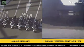 7:31PM: Protesters have arrived at the Port of Oakland, and have cheered the workers as they are leaving.